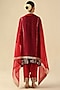 Featuring a purple asymmetric A-line short kurta in habutai silk base with gota hand embroidery. It is paired with habutai silk pants and an organza dupatta having gota trim details. Style it with statement earrings and embroidered juttis, perfect for daytime festive gatherings or pre-wedding events.
