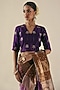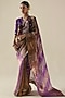 Featuring a purple saree in metallic tissue organza silk base with mukaish hand embroidery. It is paired with a raw silk blouse having rose motif embroidery. Style it with temple jewellery and heels, perfect for weddings, festive celebrations, or formal evening events.