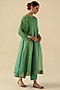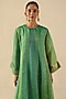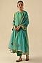 Featuring a turquoise kurta in handloom organza tissue silk and upada silk base. It is paired with modal satin pants and an organza dupatta having zari, nakshi, tilla and boota hand embroidery. Style it with statement earrings and embroidered juttis, perfect for daytime festive gatherings or pre-wedding events.