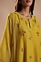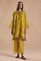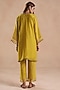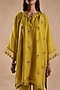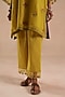 Featuring a yellow kurta in chanderi silk base with floral embroidery and lace detailing. It is paired with cotton straight pants and a cotton slip. Style it with oxidised jewellery and heels for festive look or family celebrations.