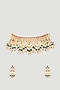 Featuring an antique gold finish handmade necklace studded with pink kundan polki, set in mixed metal. It is paired with a matching pair of earrings.