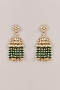 Gold Finish Floral Kundan Polki & Green Beaded Chandeleir Earrings