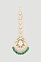 Featuring a gold finish maang tikka studded with kundan polki, green stones, and pearls, set in mixed metal.