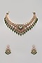 Featuring a gold finish necklace studded with kundan polki and green hanging pearls, set in mixed metal. It is paired with a matching pair of earrings. Perfect wear for festive occasions or wedding ceremonies.