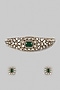 Featuring a gold finish choker necklace studded with kundan polki and green stones, set in mixed metal. It is paired with a matching pair of earrings. These earrings embody refined elegance and timeless style, perfect wear for festive occasions or wedding ceremonies.