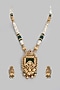Featuring a gold finish long necklace studded with kundan polki, set in mix metal. It is paired with a matching pair of earrings. Perfect wear for festive occasions or wedding ceremonies. Perfect wear for a wedding or festive occasion.