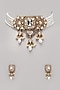 Featuring a gold finish choker necklace studded with kundan polki and pearls, set in mixed metal. It is paired with a matching pair of earrings. Perfect wear for festive occasions or wedding ceremonies.