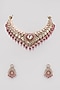 Featuring a gold finish necklace studded with pink hanging pearls and kundan polki, set in mixed metal. It is paired with a matching pair of earrings. Perfect wear for festive occasions or wedding ceremonies.