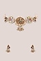 Featuring a gold finish jadau choker necklace studded with seed pearls and kundan polki, set in brass. It is paired with a matching pair of earrings. Add a touch of sparkle to your ensemble, perfect for wedding ceremonies, special occasions or festive celebrations.