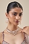 Featuring a gold finish necklace studded with kundan polki and white hanging pearls, set in mixed metal. It is paired with a matching pair of earrings. Perfect wear for festive occasions or wedding ceremonies.