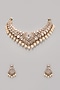 Gold Finish Kundan Polki & White Pearl Hanging Necklace Set