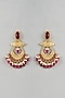 Gold Finish Red Stone & Beaded Chandbali Earrings