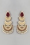 Featuring a pair of gold finish chandbali earrings studded with red synthetic stones and beads, set in mixed metal. These earrings embody refined elegance and timeless style, perfect wear for festive occasions or wedding ceremonies.