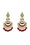 Featuring a pair of gold finish dangler earrings studded with kundan, red stones, and hanging motis, set in mixed metal.