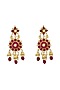 Gold Finish Red Stone & Kundan Floral Dangler Earrings
