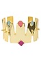 Featuring an 18k gold plated hand cuff studded with blue and purple jade stones and aqua chalcedony, set in brass alloy.