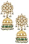 Featuring a pair of gold plated flower top earrings with yellow and green kundan stones, set in brass alloy metal.