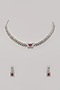 Featuring a white finish necklace studded with zircons and ruby stone, set in mixed metal. It is paired with a matching pair of earrings. Perfect wear for festive occasions or wedding ceremonies.