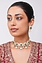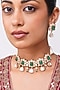 Featuring a gold finish choker necklace studded with kundan polki and emerald green stones, set in copper. It is paired with a matching pair of earrings. Perfect for weddings, festive events and grand celebrations, this exclusive necklace set is a symbol of opulence and refined style.
