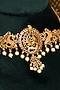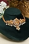 Featuring a gold finish necklace studded with kundan polki and multi-colored stones, set in copper. It is paired with a matching pair of earrings. Accentuate this elegant jewellery with your look for a polished finish, ideal for festive functions, family gatherings or wedding celebrations.
