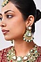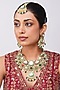 Featuring a gold finish necklace studded with kundan polki and navratna stones, set in copper. It is paired with a matching pair of earrings and a maangtikka. Perfect for weddings, festive events and grand celebrations, this exclusive necklace set is a symbol of opulence and refined style.