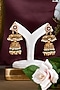 Featuring a gold finish necklace studded with kundan polki and red stones, set in copper. It is paired with a matching pair of earrings. Accentuate this elegant jewellery with your look for a polished finish, ideal for festive functions, family gatherings or wedding celebrations.