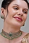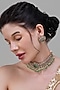 Featuring a gold finish handcrafted choker necklace studded with mint green and rani pink kundan polki, set in copper. It is paired with a matching pair of earrings. Perfect for grand occasions like weddings and traditional festivities.