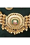 Featuring a gold finish choker necklace studded with multi-colored stones and kundan polki, set in copper. It is paired with a matching pair of earrings. Add a touch of sparkle to your ensemble, perfect for wedding ceremonies or festive celebrations.