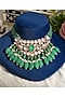 Gold Finish Pacchi Kundan Polki & Mint Pearl Floral Choker Necklace Set