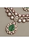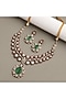Featuring a gold finish necklace studded with diamonds, ruby and emeralds, set in copper. It is paired with a matching pair of earrings. Add a touch of sparkle to your ensemble, perfect for wedding ceremonies or festive celebrations.