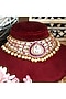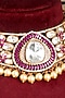 Featuring a gold finish choker necklace studded with ruby kundan polki and pearl drops, set in mixed metal. It is paired with a matching pair of earrings. Perfect for wedding celebrations, festive soirees or cultural gatherings adding a regal charm to every look.
