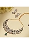 Featuring a 18kt gold plated necklace studded with kundan polki, emerald moissanite and ruby doublet stones, set in copper. It is paired with a matching pair of earrings. Style this jewellery with any traditional wear to elevate your ensemble with a regal touch and enhance its richness. Perfect for weddings, festive celebrations and grand evening functions.