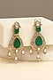 Featuring a 18kt gold plated long necklace studded with kundan polki and doublet stones, set in copper. It is paired with a matching pair of earrings. Perfect for festive occasions, weddings or cultural events, this jewellery is a wardrobe must for those who love to shine effortlessly.