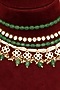 Featuring a 18kt gold plated layered necklace studded with kundan polki, emeralds and pearls, set in copper. It is paired with a matching pair of earrings. Perfect for festive occasions, weddings or cultural events, this jewellery is a wardrobe must for those who love to shine effortlessly.