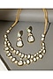 Featuring a 18kt gold plated meenakari layered necklace studded with kundan polki, set in copper. It is paired with a matching pair of earrings. Style this jewellery with any traditional wear to elevate your ensemble with a regal touch and enhance its richness. Perfect for weddings, festive celebrations and grand evening functions.