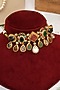 Featuring a 18kt gold plated necklace studded with kundan polki and multi-colored doublet stones, set in copper. It is paired with a matching pair of earrings. Perfect for festive occasions, weddings or cultural events, this jewellery is a wardrobe must for those who love to shine effortlessly.