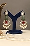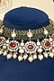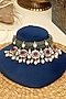 Featuring a 18kt gold plated necklace studded with kundan polki and multi-colored doublet stones, set in copper. It is paired with a matching pair of earrings. Perfect for festive occasions, weddings or cultural events, this jewellery is a wardrobe must for those who love to shine effortlessly.