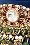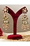 Featuring a 18kt gold plated choker necklace studded with kundan polki, ruby, mint, sapphire and emerald stones, set in copper. It is paired with a matching pair of earrings. Style this jewellery with any traditional wear to elevate your ensemble with a regal touch and enhance its richness. Perfect for weddings, festive celebrations and grand evening functions.