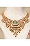 Featuring a 18kt gold plated anti-tarnish necklace studded with kundan polki and multi-colored stones, set in copper. It is paired with a matching pair of earrings. Add a touch of sparkle to your ensemble, perfect for wedding ceremonies, special occasions or festive celebrations.