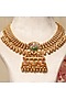 Featuring a 18kt gold plated anti-tarnish necklace studded with kundan polki and multi-colored stones, set in copper. It is paired with a matching pair of earrings. Add a touch of sparkle to your ensemble, perfect for wedding ceremonies, special occasions or festive celebrations.