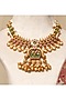 Featuring a 18kt gold plated anti-tarnish necklace studded with kundan polki and multi-colored stones, set in copper. It is paired with a matching pair of earrings. Add a touch of sparkle to your ensemble, perfect for wedding ceremonies, special occasions or festive celebrations.