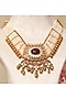 Featuring a 18kt gold plated necklace studded with kundan polki and multi-colored stones, set in copper. It is paired with a matching pair of earrings. Add a touch of sparkle to your ensemble, perfect for wedding ceremonies, special occasions or festive celebrations.