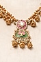 Featuring a 18kt gold plated anti-tarnish necklace studded with kundan polki and multi-colored stones, set in copper. It is paired with a matching pair of earrings. Add a touch of sparkle to your ensemble, perfect for wedding ceremonies, special occasions or festive celebrations.