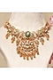 Featuring a 18kt gold plated anti-tarnish necklace studded with kundan polki and multi-colored stones, set in copper. It is paired with a matching pair of earrings. Add a touch of sparkle to your ensemble, perfect for wedding ceremonies, special occasions or festive celebrations.