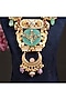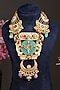 Featuring a 18kt gold plated handcrafted necklace studded with kundan polki, set in copper. It is paired with a matching pair of earrings. Add a touch of sparkle to your ensemble, perfect for wedding ceremonies or festive celebrations.