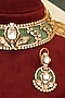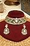 Featuring a 18kt gold plated necklace studded with kundan polki and pearls, set in copper. It is paired with a matching pair of earrings. Perfect for festive occasions, weddings or cultural events, this jewellery is a wardrobe must for those who love to shine effortlessly.