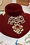 Featuring a 18kt gold plated necklace studded with kundan polki and red stones, set in copper. It is paired with a matching pair of earrings. Perfect for festive occasions, weddings or cultural events, this jewellery is a wardrobe must for those who love to shine effortlessly.