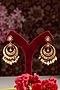 Featuring a pair of 18kt gold plated chandbali earrings studded with kundan polki, pearl droplets and ruby stones, set in copper. studded with kundan polki, set in copper. Add a touch of sparkle to your ensemble, perfect for wedding ceremonies or festive celebrations.