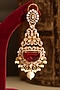 Featuring a pair of 18kt gold plated dangler earrings studded with kundan polki and ruby doublet stones, set in copper. Perfect for festive occasions, weddings or cultural events, this jewellery is a wardrobe must for those who love to shine effortlessly.