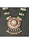 Featuring a 18kt gold plated pendant necklace studded with kundan polki, ruby and pearls, set in copper. It is paired with a matching pair of earrings. Add a touch of sparkle to your ensemble, perfect for wedding ceremonies or festive celebrations.